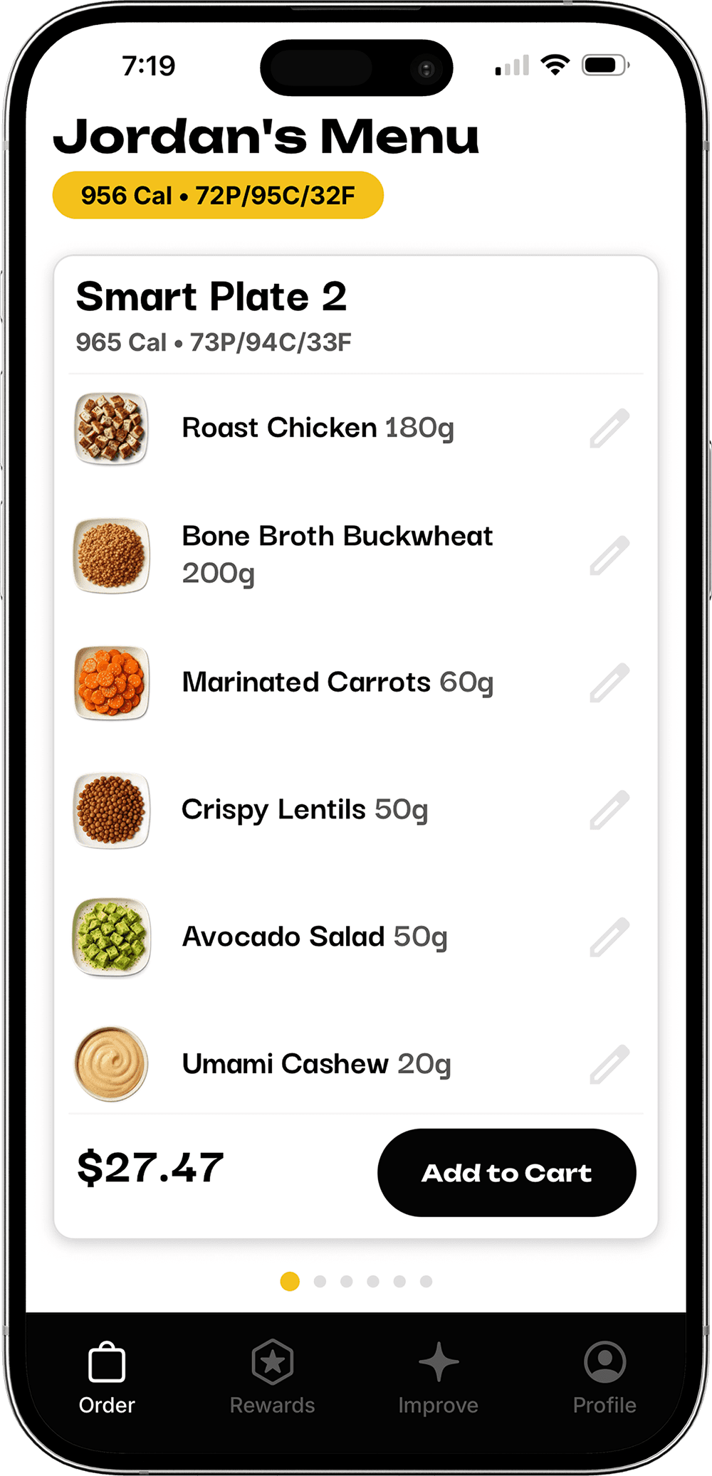 Download the app to explore personalized nutrition and see how meals are generated. Ordering from our Venice kitchen begins February 2026.
